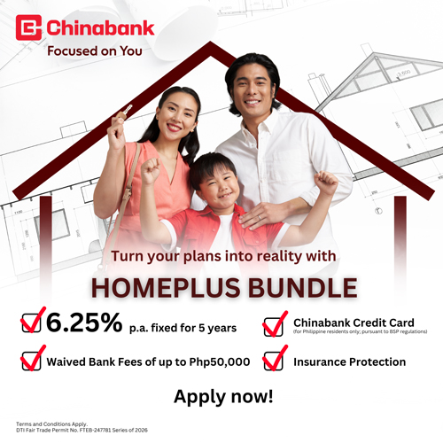 This limited-time offer is open for new loan applications with complete documentation received from February 2 until March 31, 2026, with a booking deadline of April 30, 2026. Detailed information is available at any Chinabank branch nationwide or click here.