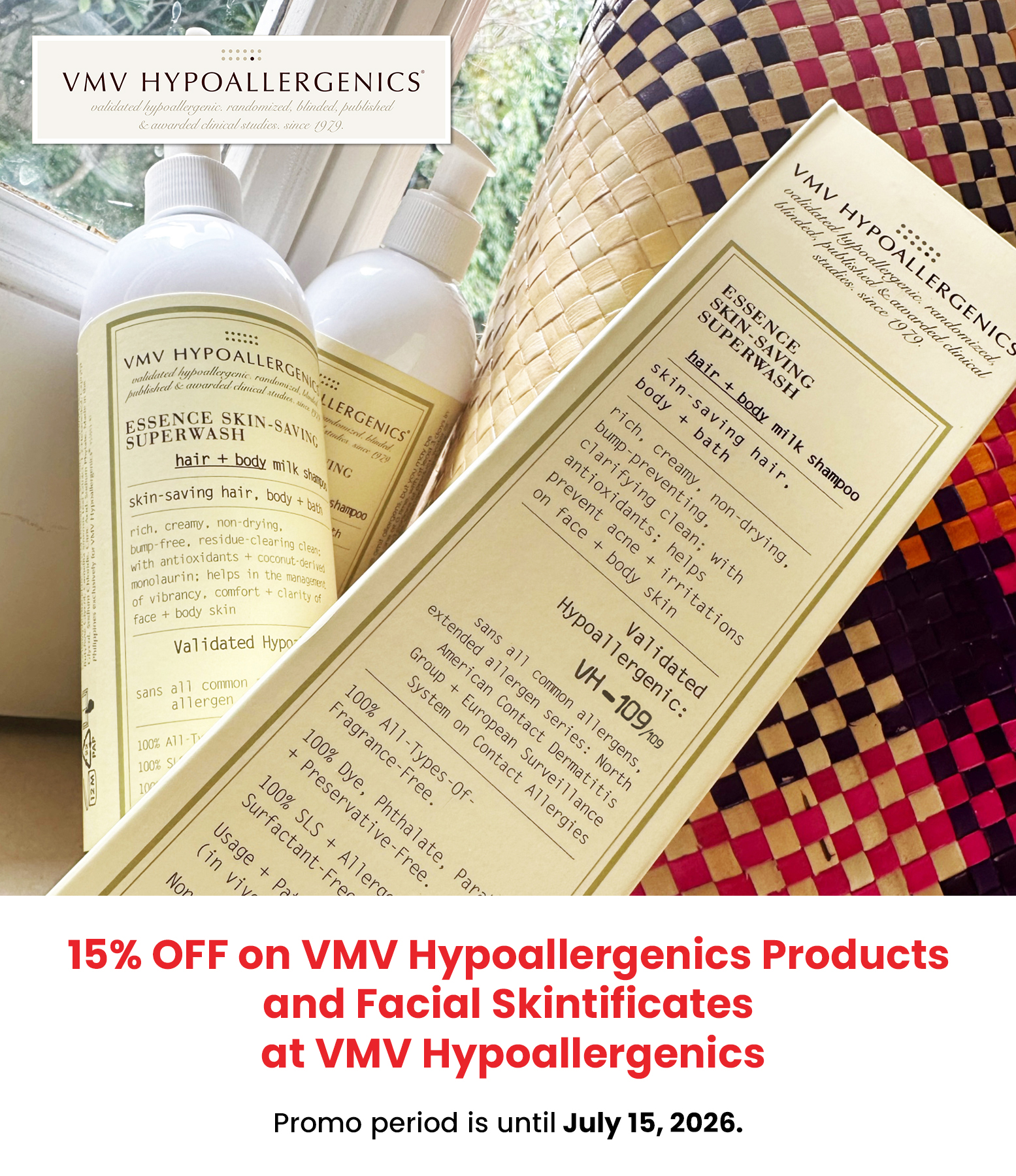 • 15% OFF VMV Hypoallergenics Products (except Armada and Know It Oil items) for a minimum single-receipt in-store purchase of P4,000