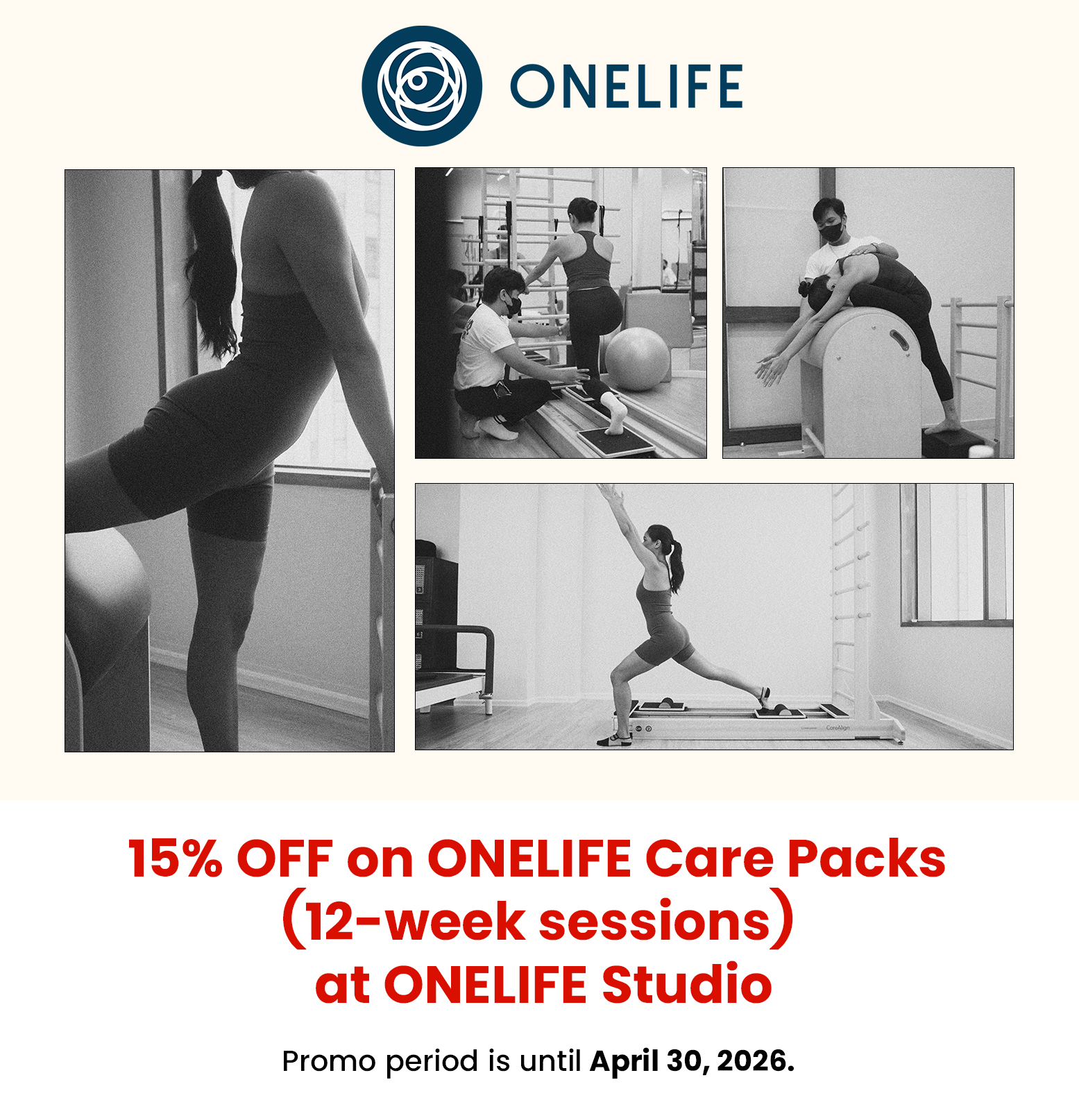 3. Enjoy 15% OFF on ONELIFE Care Packs (12-week sessions) for Pelvic Floor, Pregnancy, Back Pain, and Post-Pregnancy at ONELIFE Studio when using a Chinabank credit or debit card.