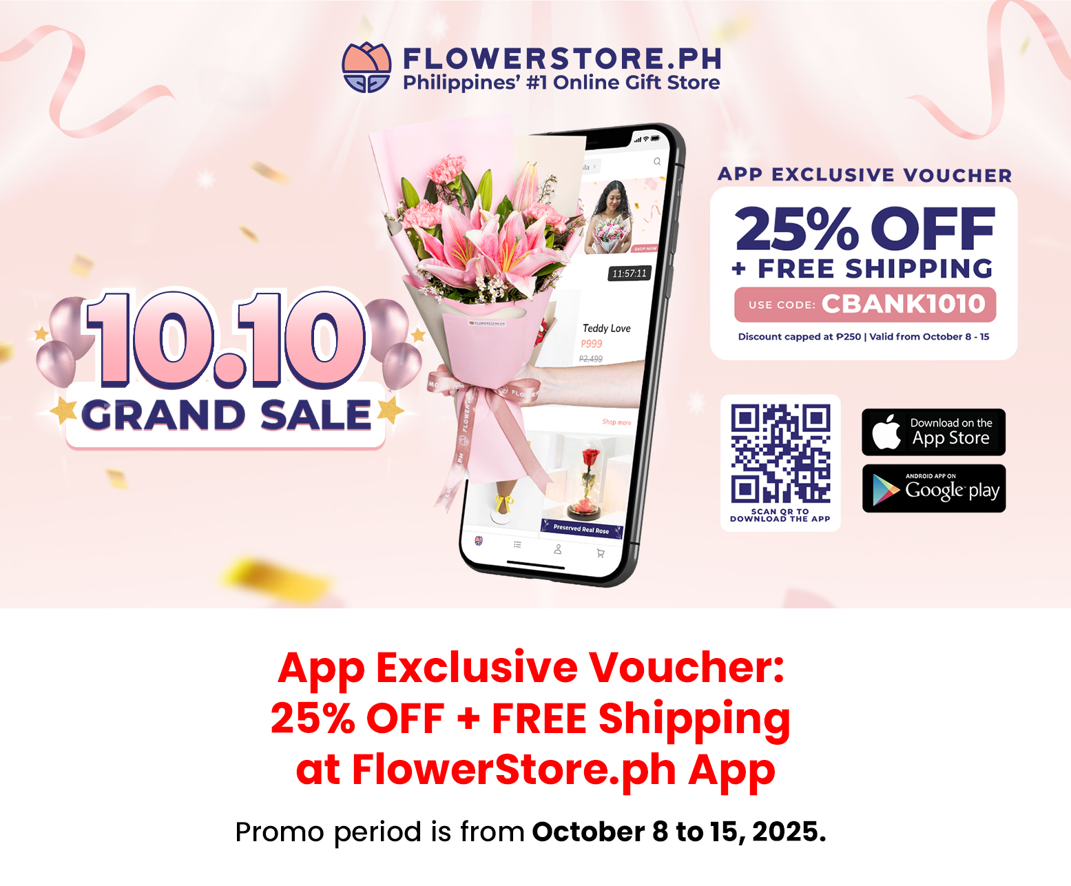 • APP EXCLUSIVE OFFER: 25% OFF + FREE Shipping on all orders via FlowerStore.ph mobile app (except for Flash Sale items). No minimum spend. Discount is capped