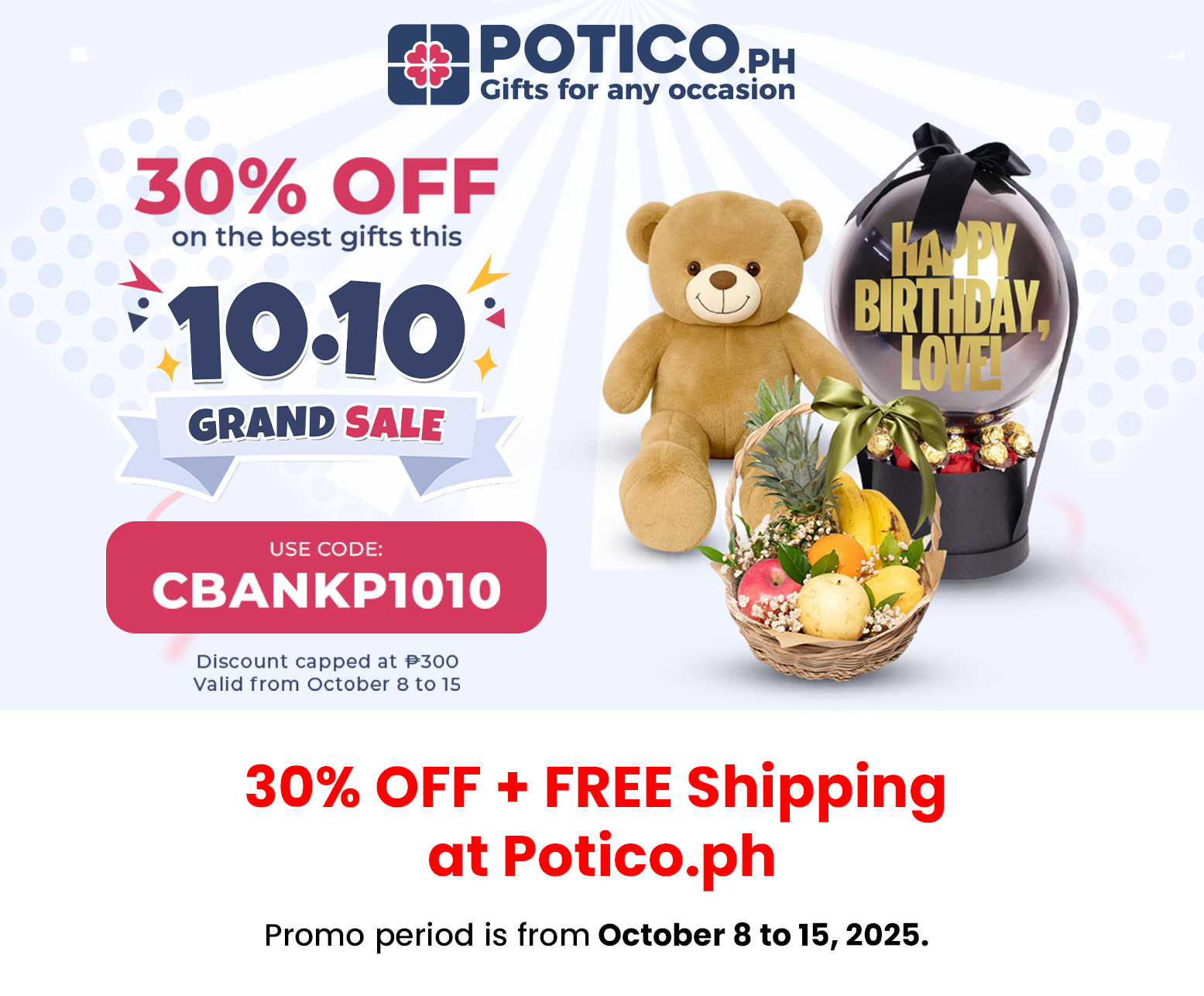 • 30% OFF + FREE Shipping at Potico.ph. No minimum spend. Discount is capped at P300. Use code: CBANKP1010 (multiple use)