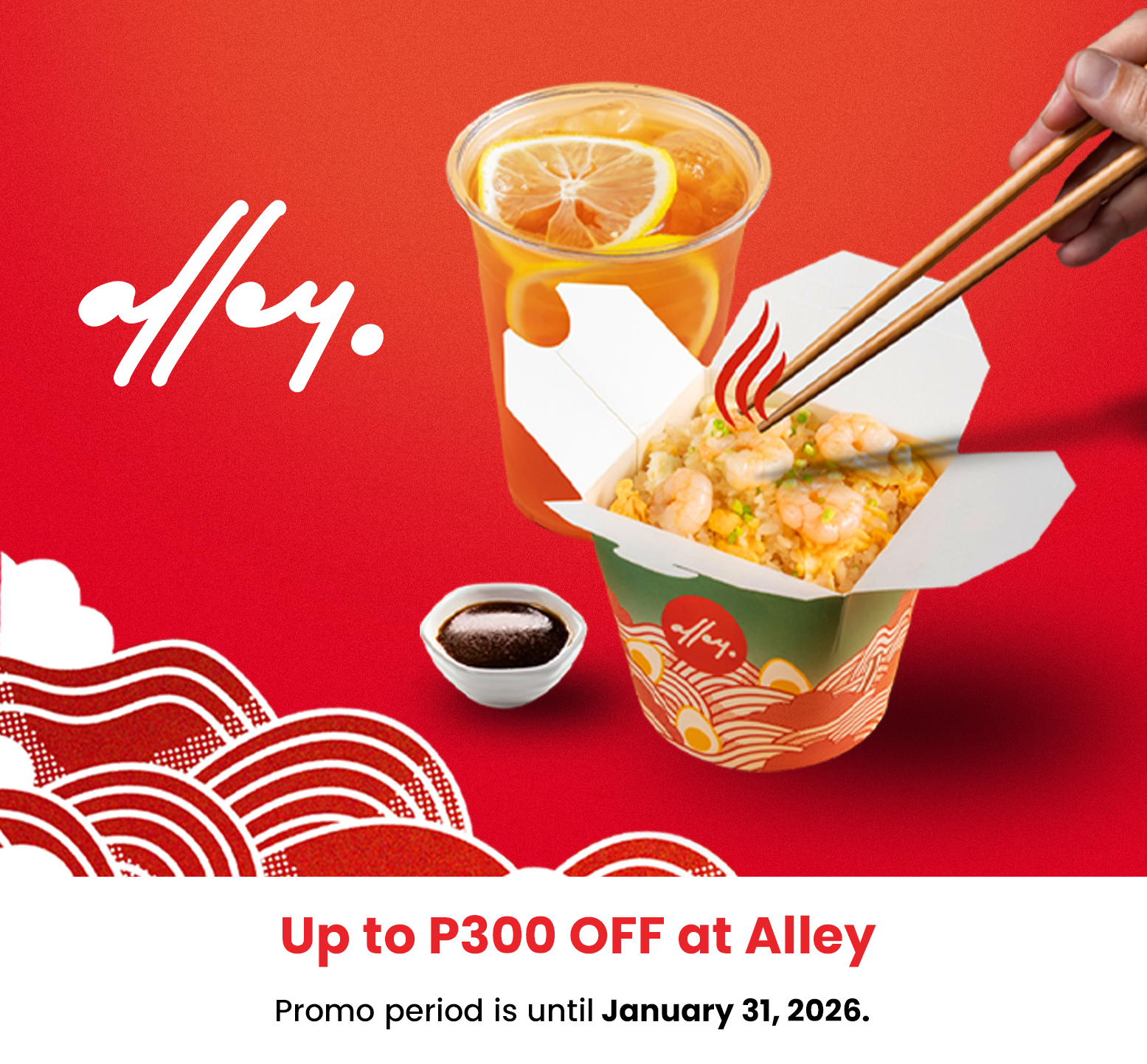 • P300 OFF for a minimum single receipt spend of P2,500 at Alley.