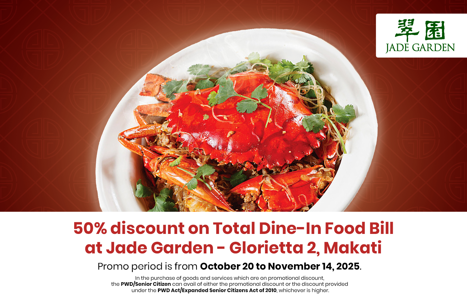 6. Promo Offer is only available for A la Carte and Food Orders only. The 50% discount will not be applicable to set menus, banquet sales, parties, and private functions.