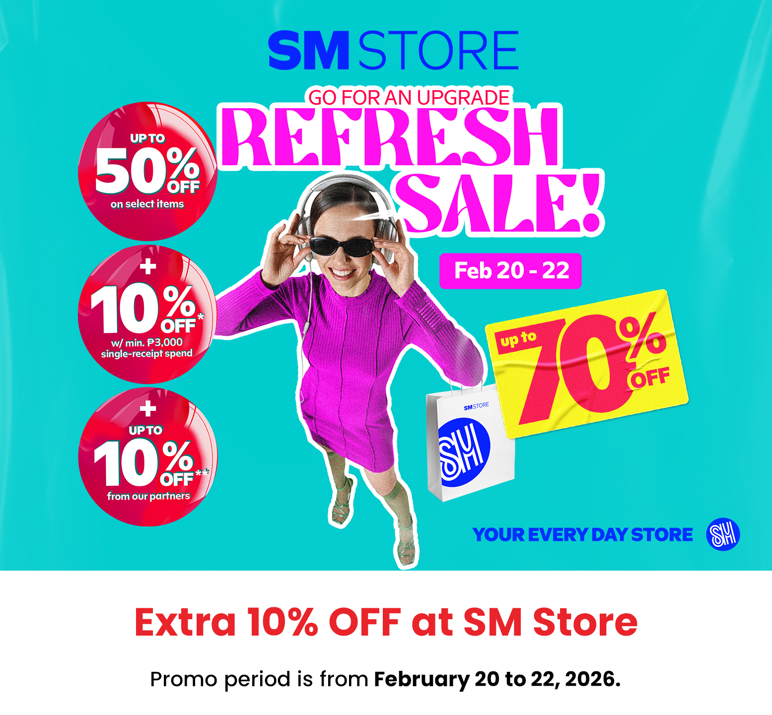 c) EXTRA 10% OFF for a minimum single-receipt purchase of P3,000 (straight) or P10,000 (installment). Maximum discount of P3,000 per qualified transaction.