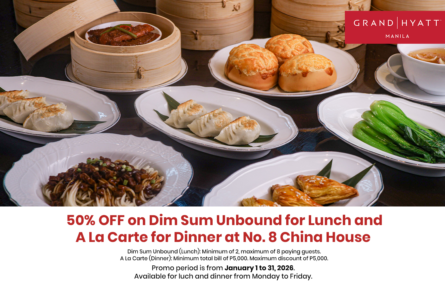 2. The exclusive offer is valid from January 1 to 31, 2026 at No. 8 China House of Grand Hyatt Manila with the following operating hours.