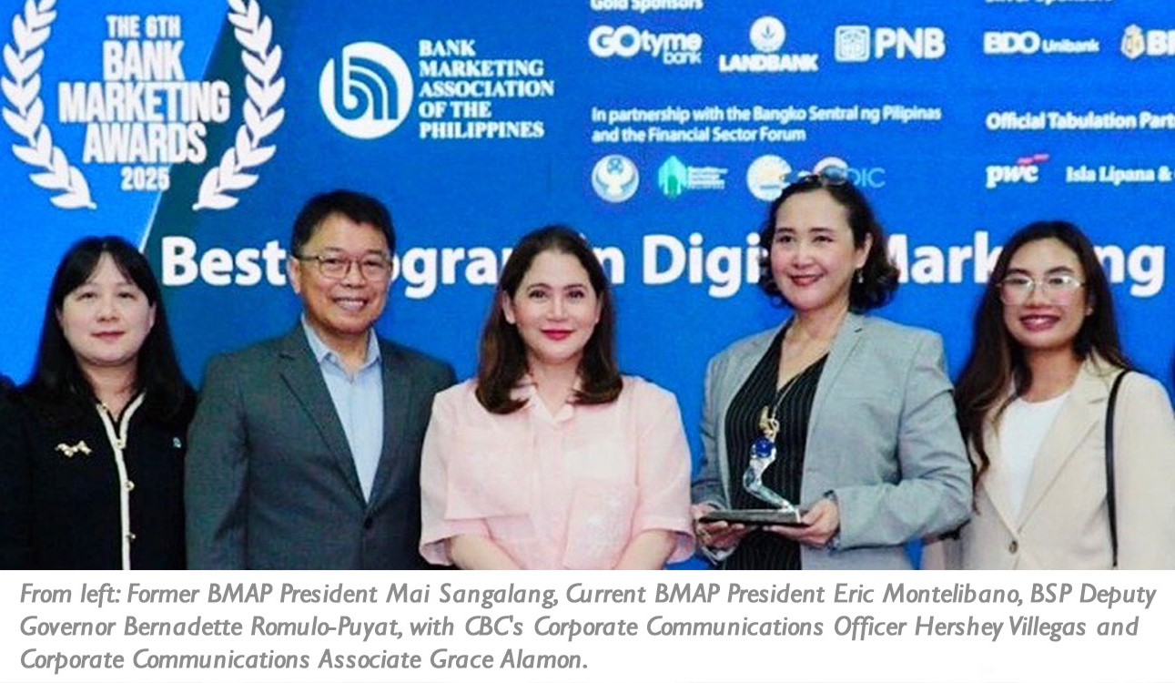 Chinabank's digital campaign for its redesigned mobile app was distinguished as the Best Program in Digital Marketing at the 2025 Bank Marketing Awards, held on November 28 at the BSP Complex in Manila.