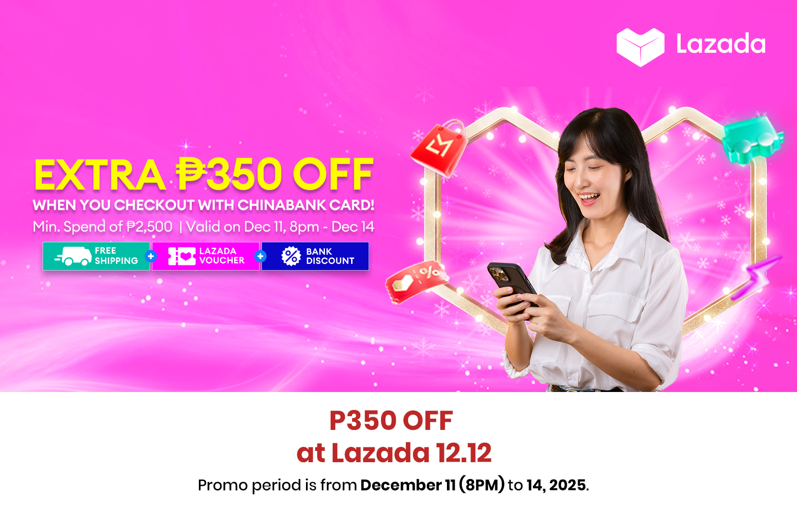 1. To qualify for the promo, the Cardholder must use an eligible Chinabank Credit or Debit Card for payment at Lazada.