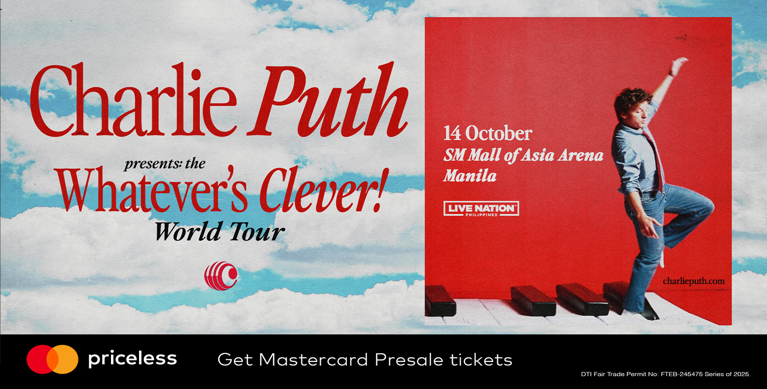 - Cardholders are entitled to join the Mastercard® Pre-Sale to purchase Charlie Puth – Whatever's Clever! World Tour in Manila at the Mastercard® website: priceless.com/music