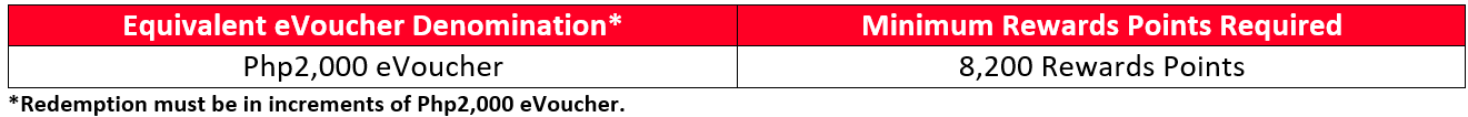 2. The Principal Cardholder may use their Rewards Points to redeem eVouchers or Codes, whichever is applicable.